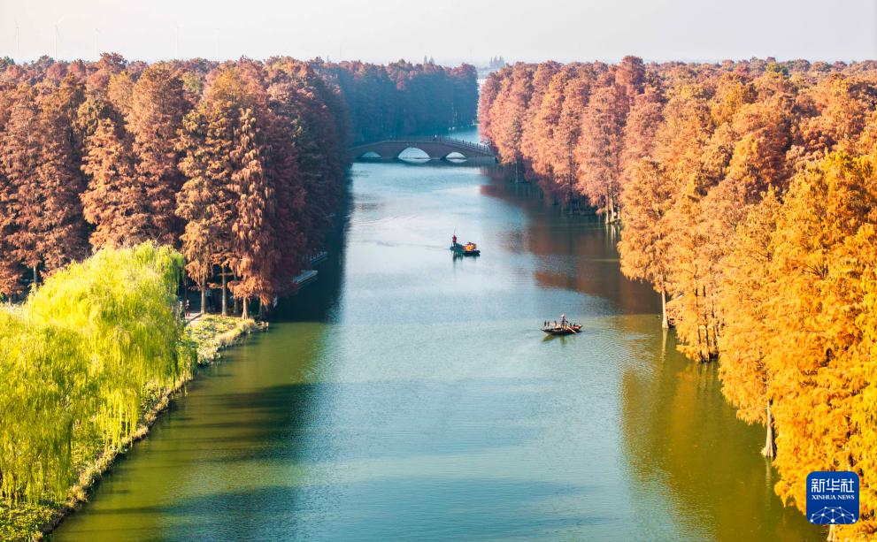 这是位于安徽省滁州市来安县的池杉湖国家湿地公园(12月20日摄,无人机照片)。