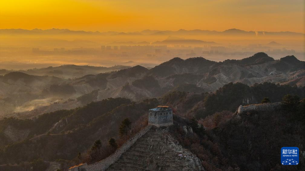 12月19日拍摄的河北省遵化市侯家寨镇的古长城(无人机照片)。