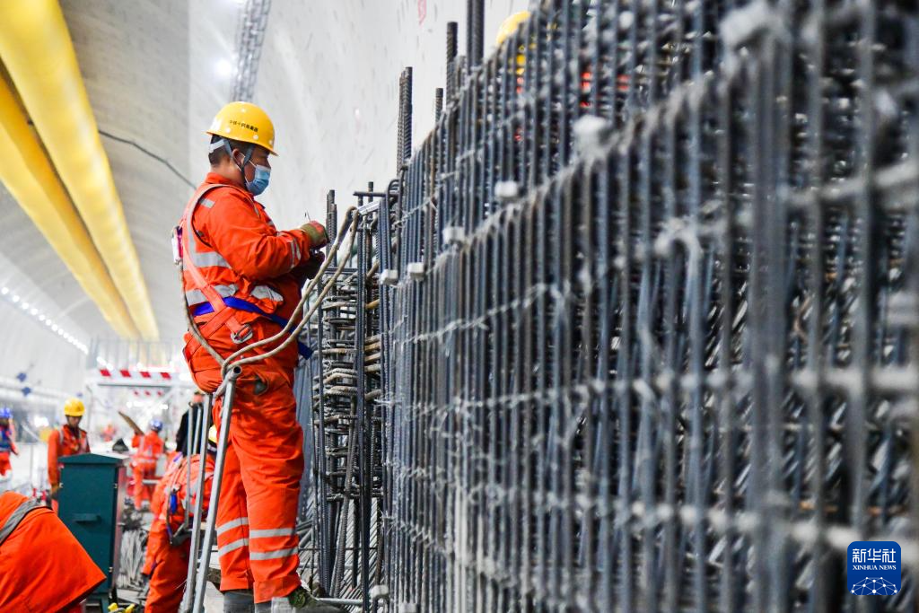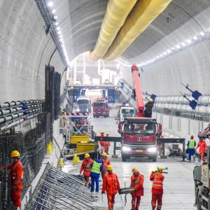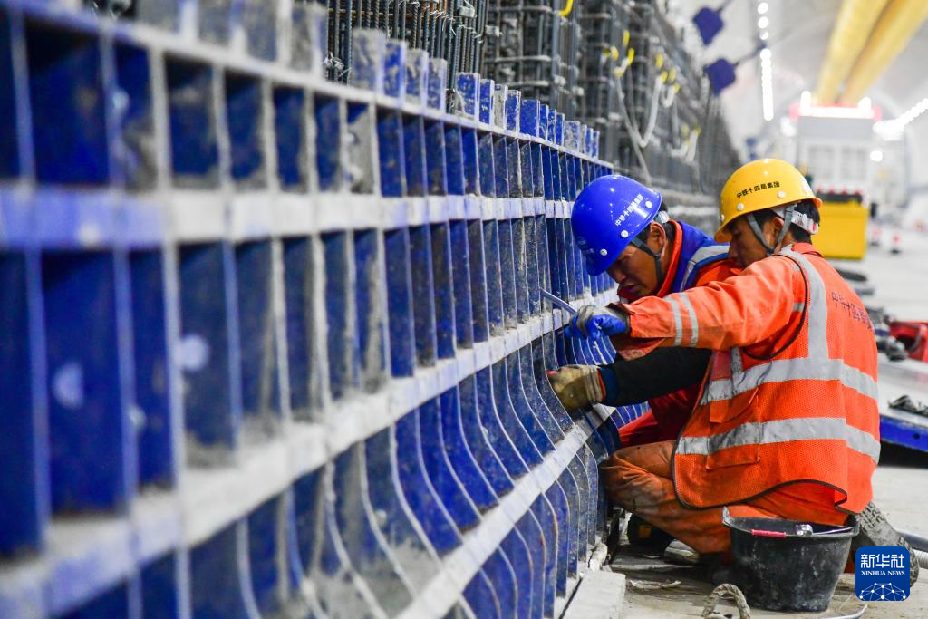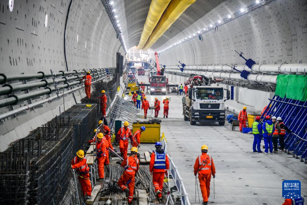 12月20日,中铁十四局建设者在黄岗路穿黄隧道内施工作业。