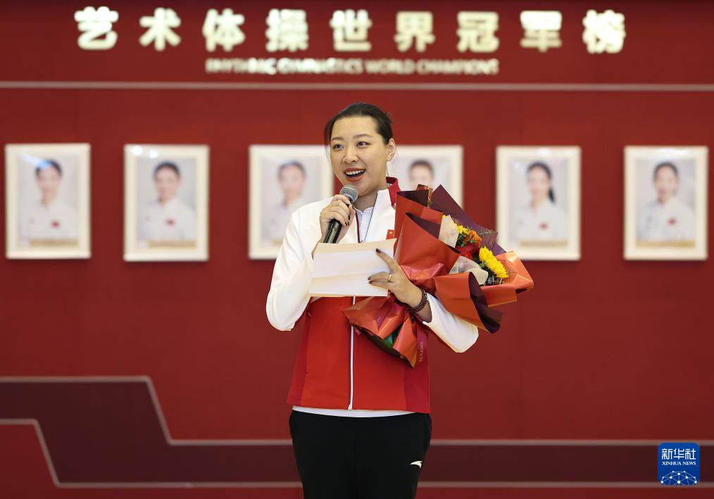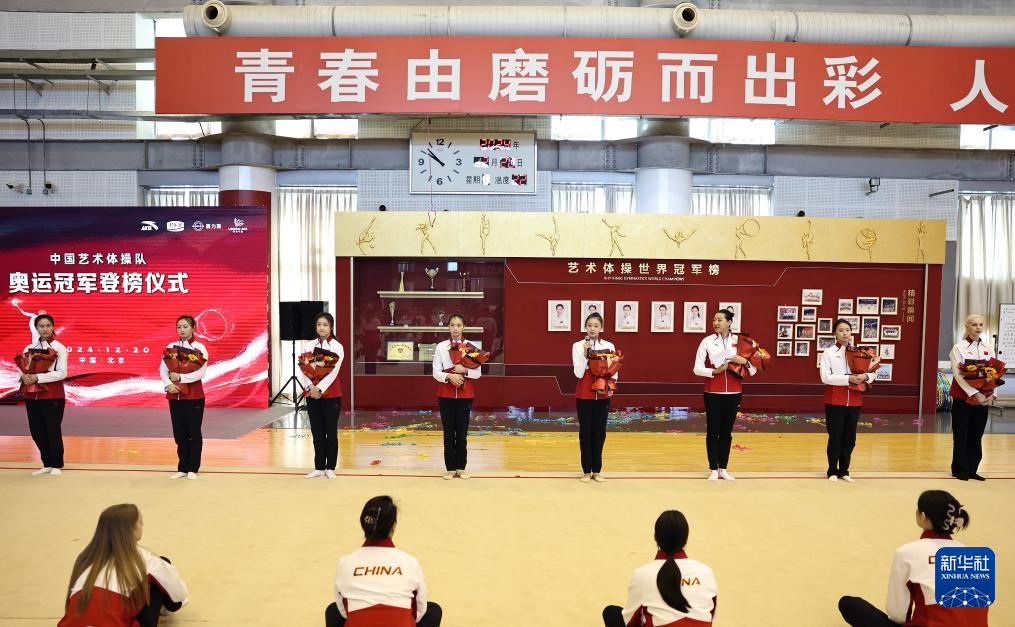 12月20日,获得巴黎奥运会艺术体操项目集体全能金牌的中国艺术体操队成员们在登榜仪式上发言。