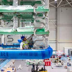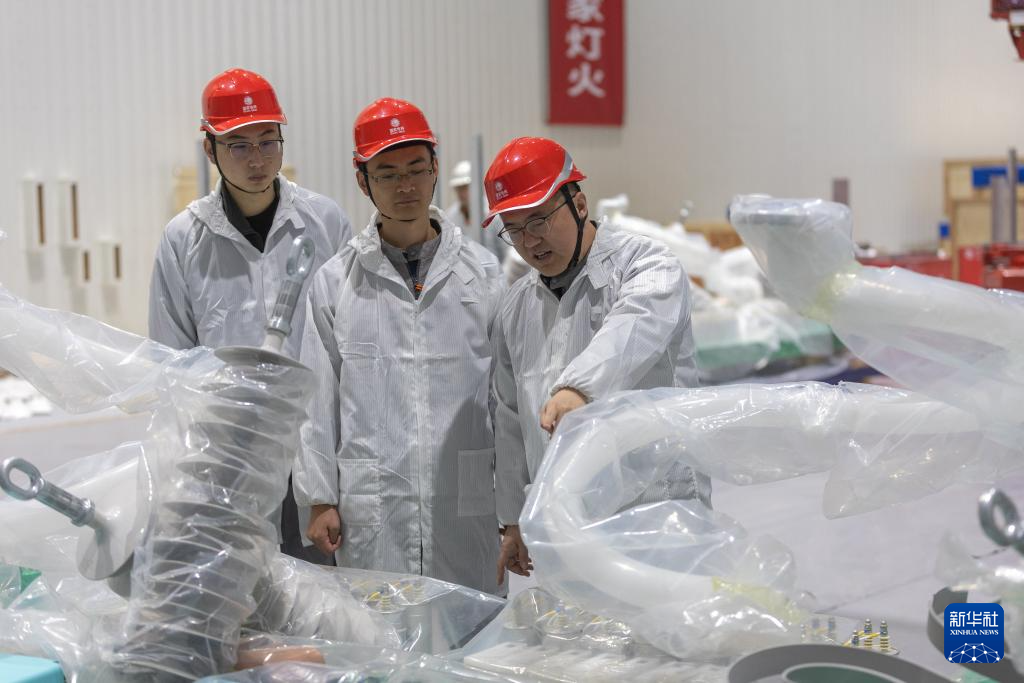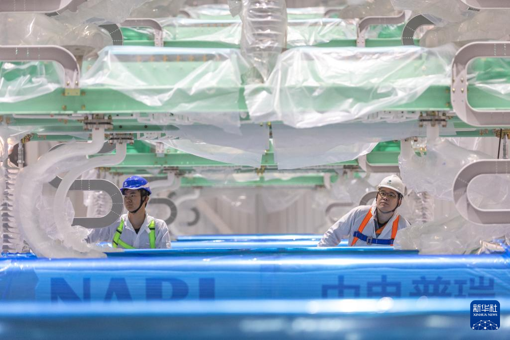 12月19日,在“疆电入渝”特高压渝北±800千伏换流站工程施工现场,安徽送变电工程有限公司的技术人员在检查国产换流阀的安装质量。