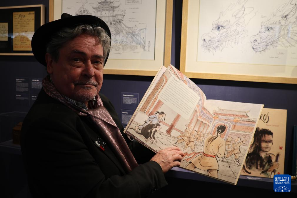 3月23日,在法国巴黎举办的“甲子情深——中法百姓故事展”开幕式上,法国画家皮埃尔·科尼埃尔展示其创作的“中国风”法语绘本。