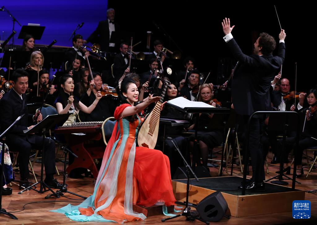 10月10日,在法国巴黎戴高乐机场举行的“中法金秋文化盛宴”活动上,法国歌手乔伊丝·乔纳森(右)和越剧演员陈丽君联袂演绎越剧选段。