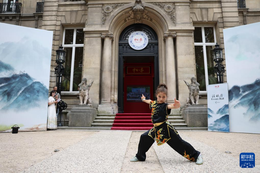8月3日,一名法国小朋友在巴黎奥运会“中国之家”开展的中国传统体育文化主题活动中表演武术。该活动邀请法国当地青少年前来体验捶丸、踢毽、投壶、武术等中国传统体育。