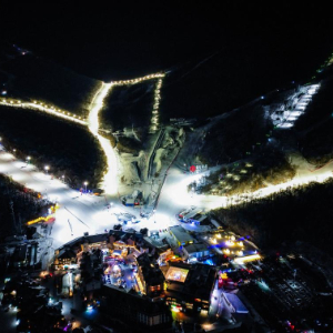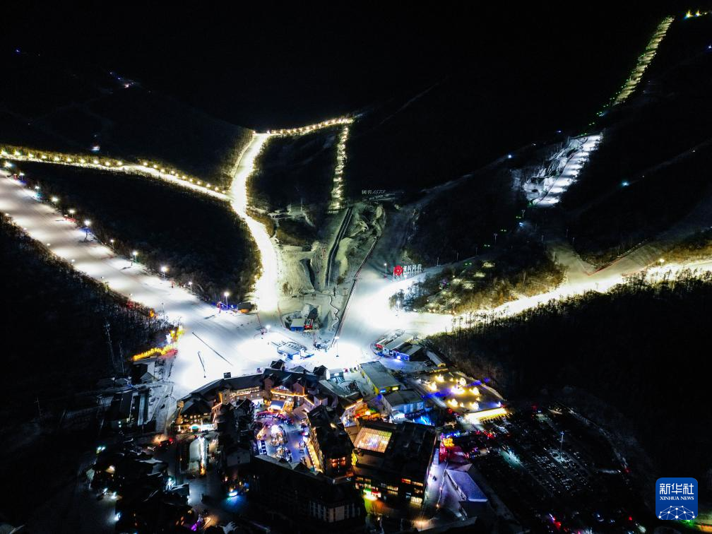 这是12月19日拍摄的吉林市北大湖滑雪度假区夜景(无人机照片)。