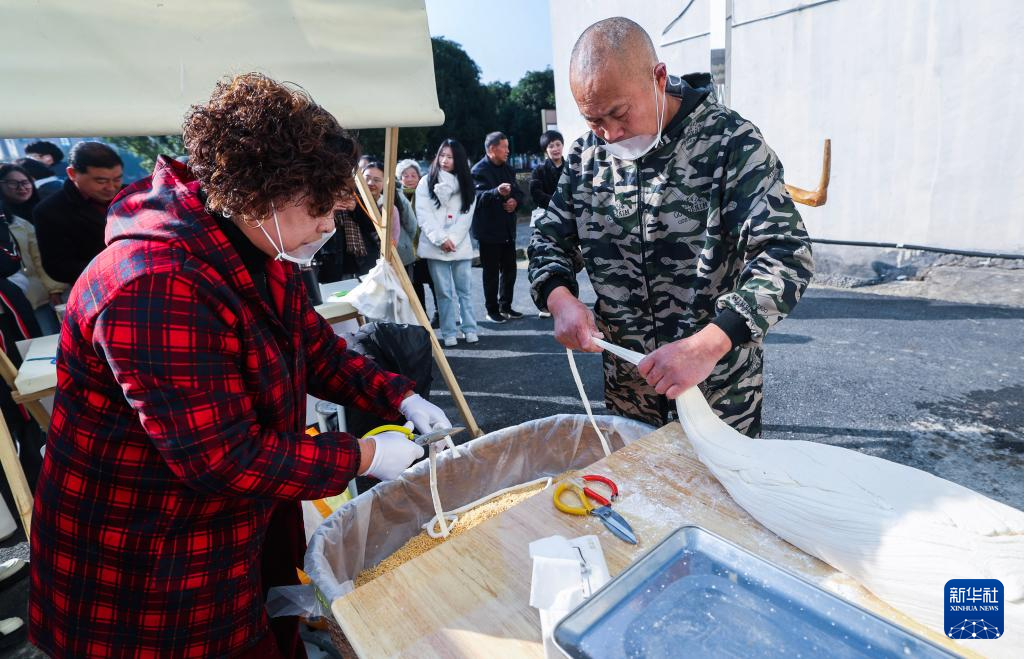 12月20日,在璜山镇溪北村的乡村共富市集上,村民在制作麦芽糖。