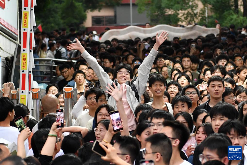 6月9日,在湖南省娄底市冷水江市第一中学考点,考生在考试结束后走出考场。