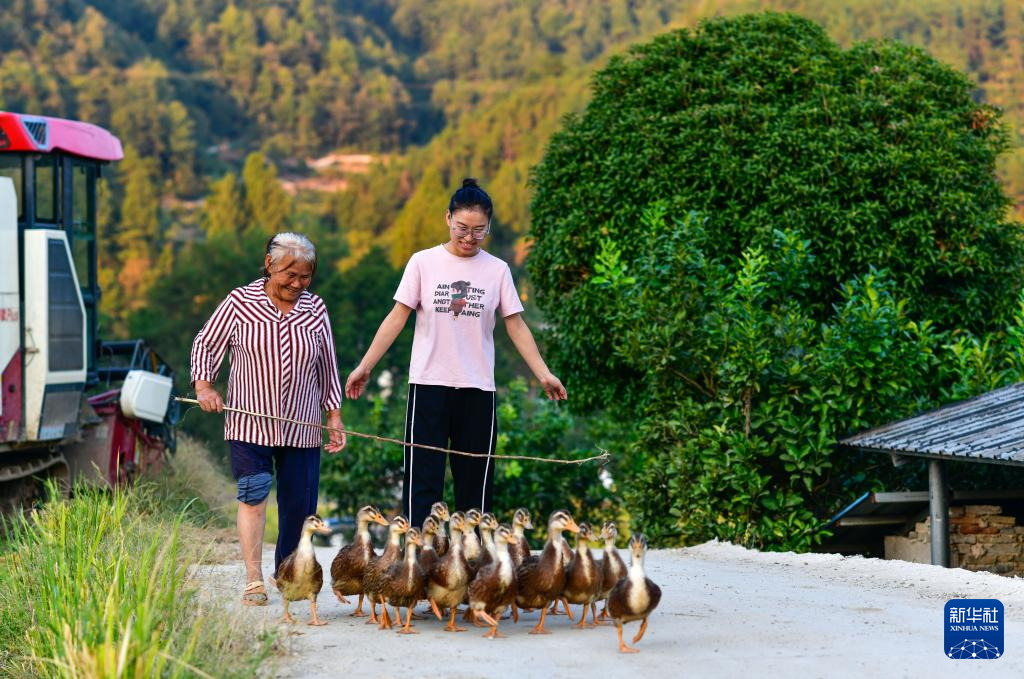 9月25日,在贵州省岑巩县注溪镇周坪村,28岁的驻村干部侯佳媛(右)在与村民交流。