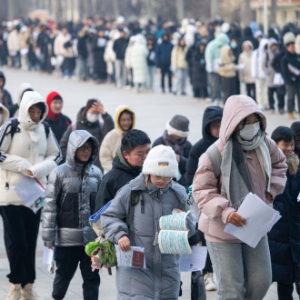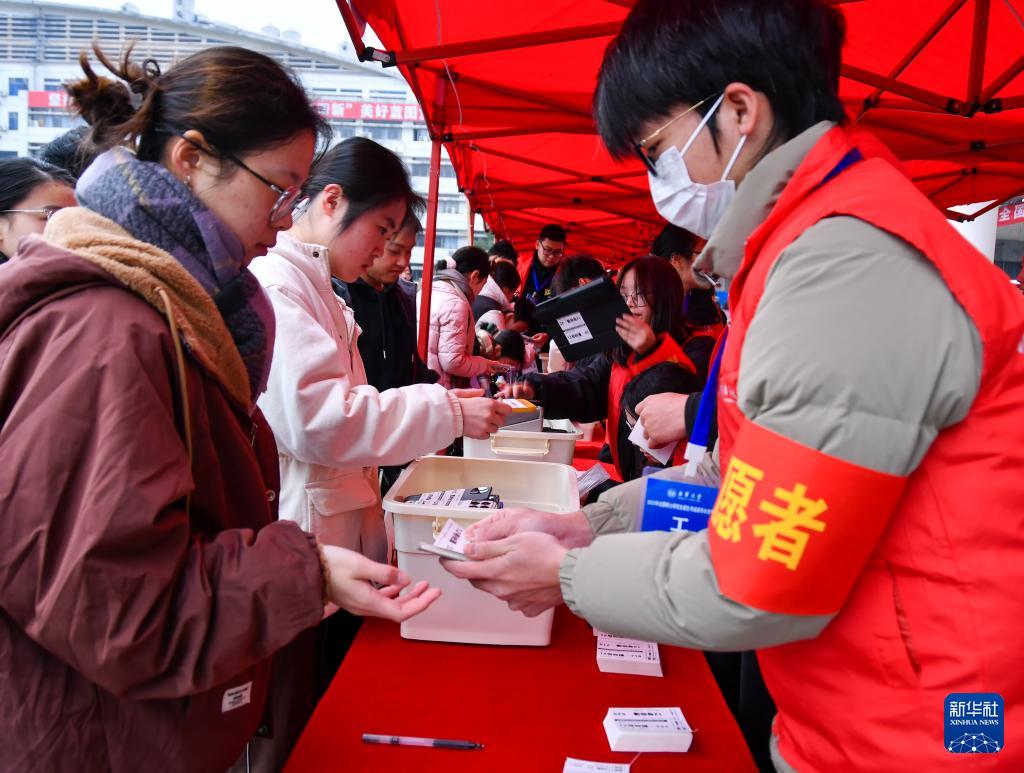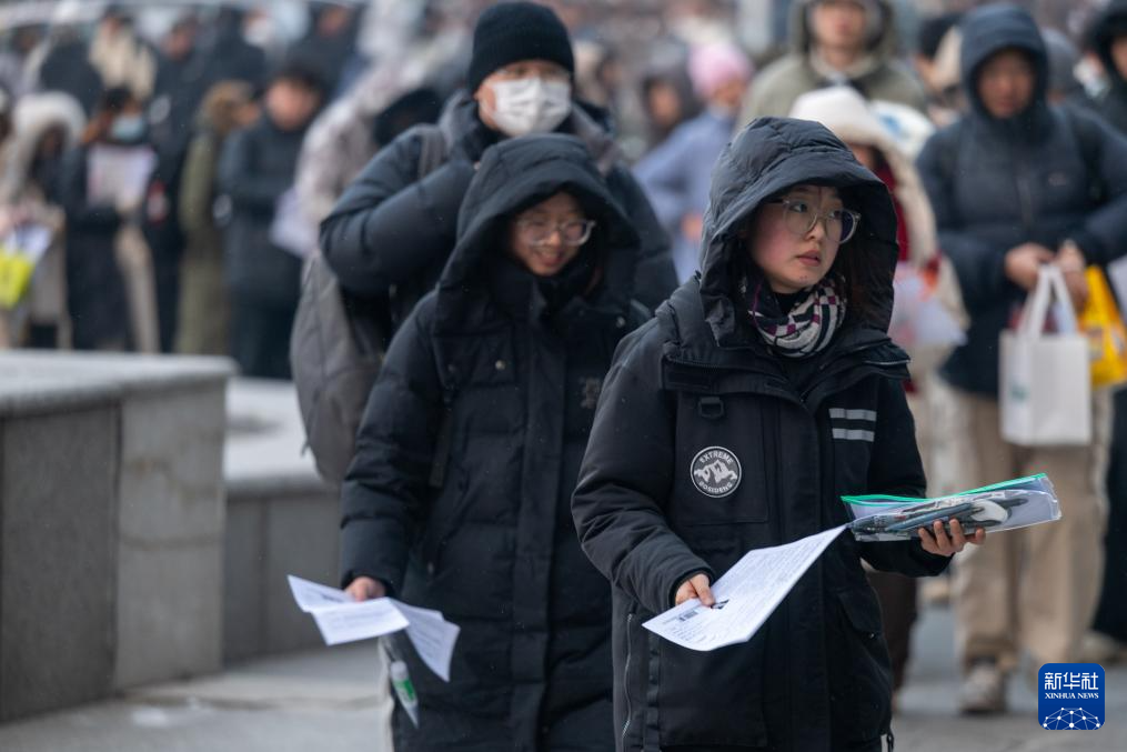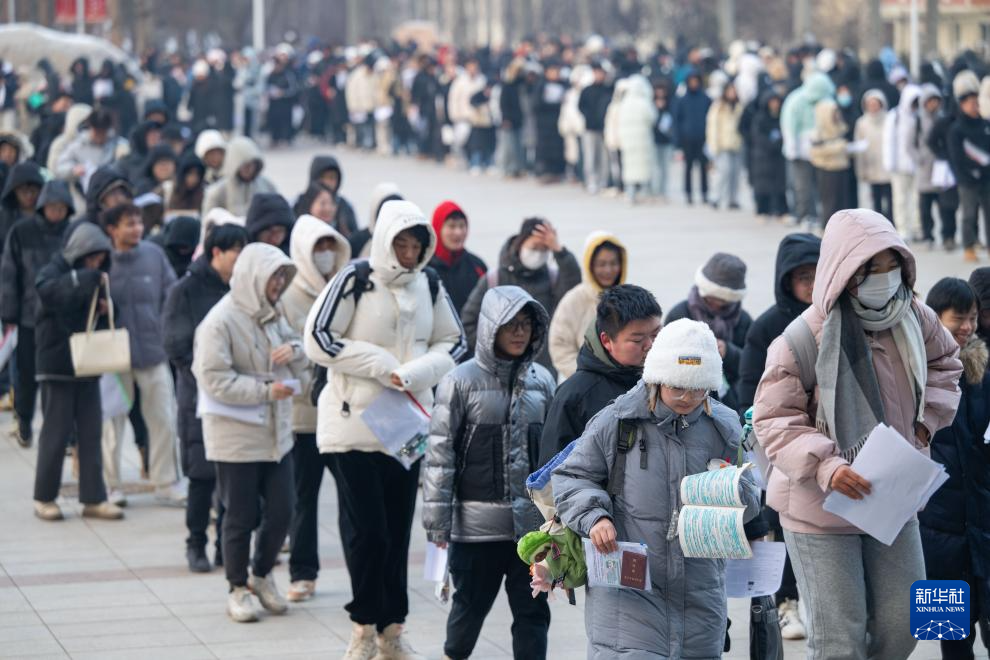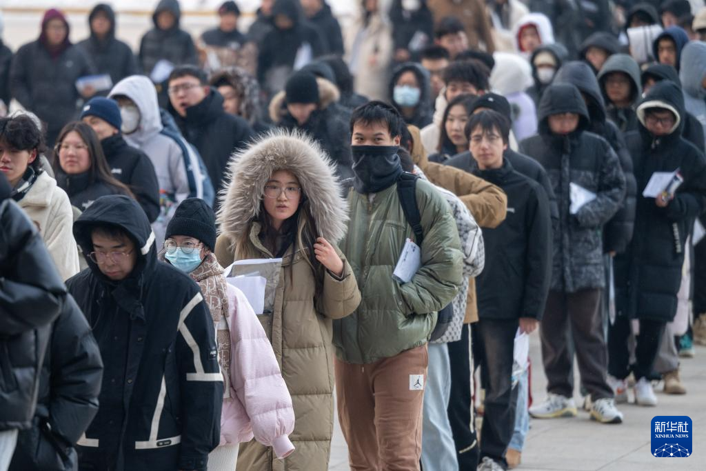 12月21日,考生在哈尔滨理工大学考点排队进入考场。