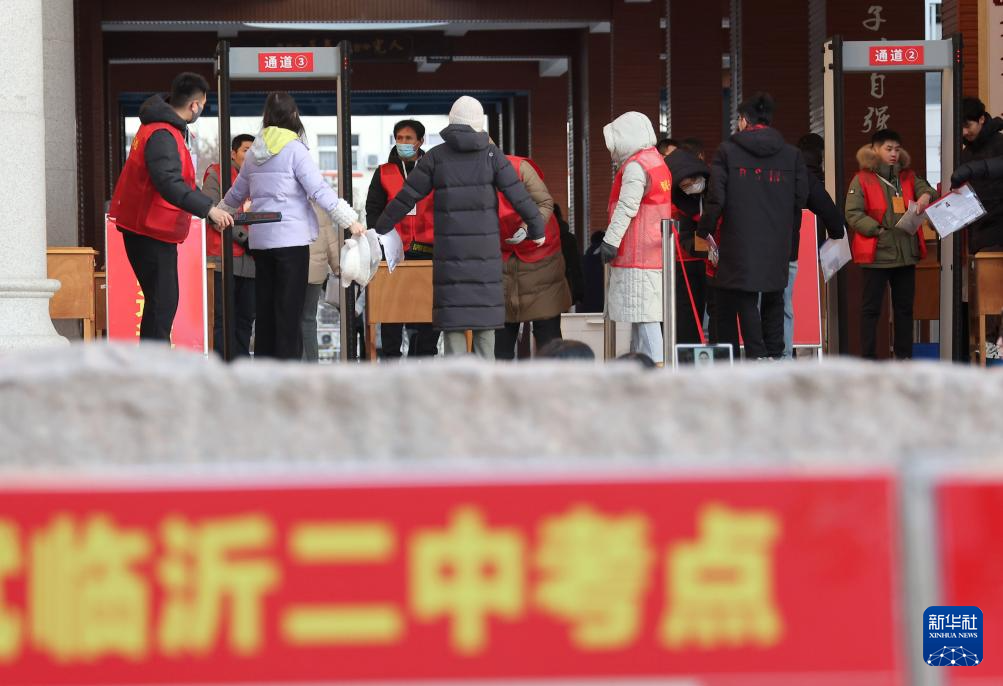 12月21日,在山东省临沂二中考点,考生通过安检进入考场。