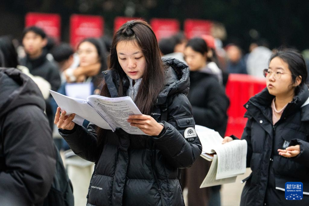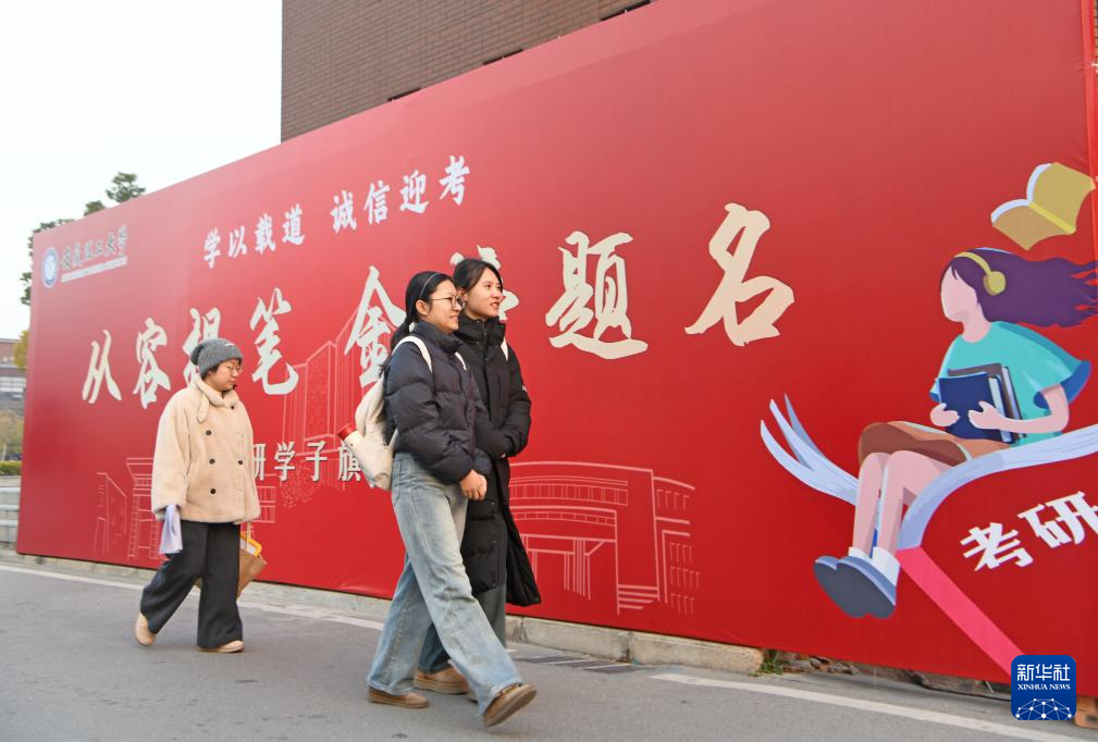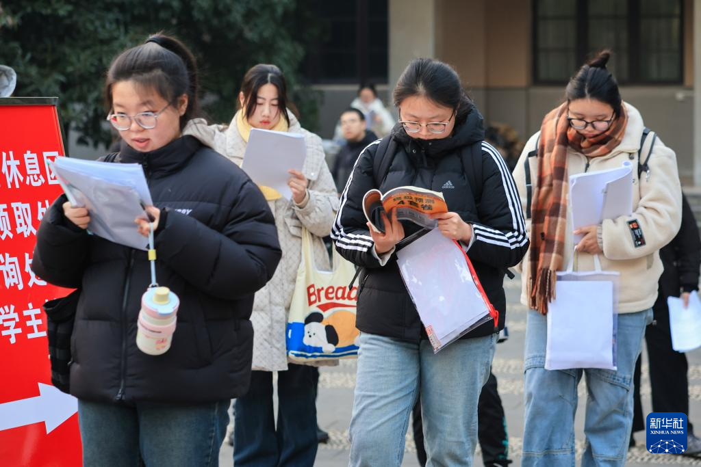 12月21日,在江苏南京河海大学考点,考生抓紧考前时间复习。
