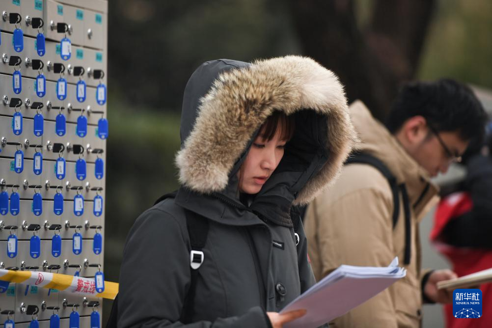 12月21日,在中国人民大学考点,考生进入考场前存包。