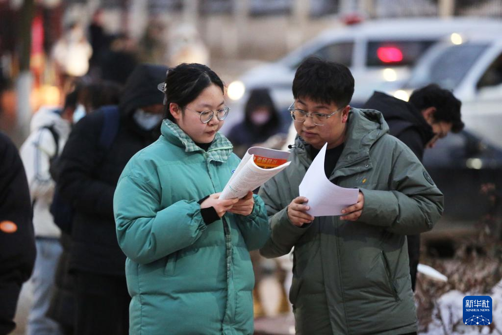 12月21日,在山东省枣庄市实验学校考点,考生在入场前抓紧时间复习。