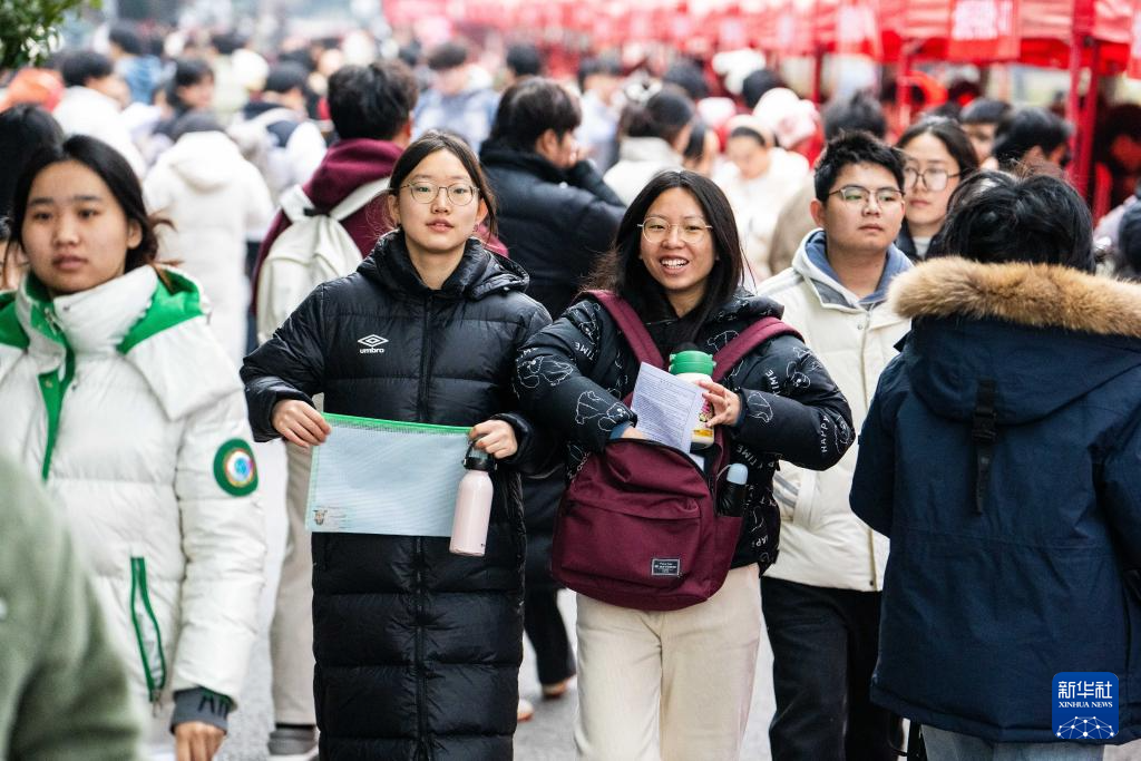 12月21日,在湖南省衡阳市南华大学考点,考生有序进入考场(无人机照片)。