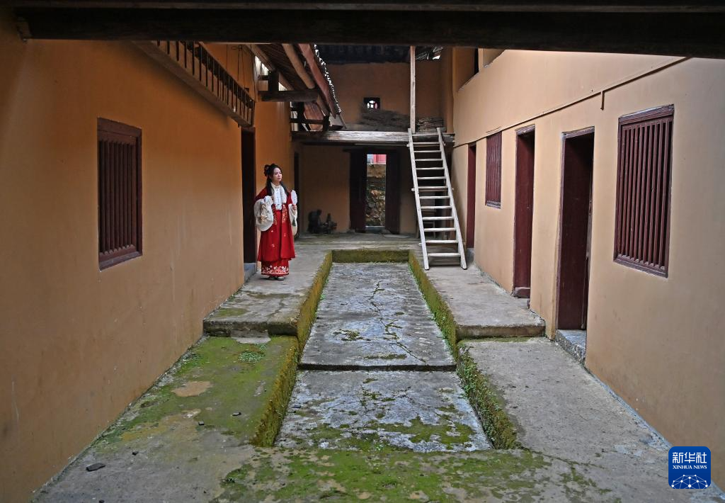 这是广西柳州市融安县大将镇龙妙村龙妙屯一座古建筑内的庭院(12月17日摄)。