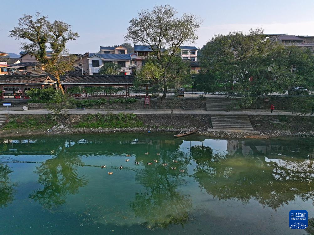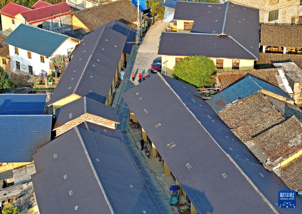 村民行走在广西柳州市融安县大将镇龙妙村龙妙屯老街上(12月17日摄,无人机照片)。