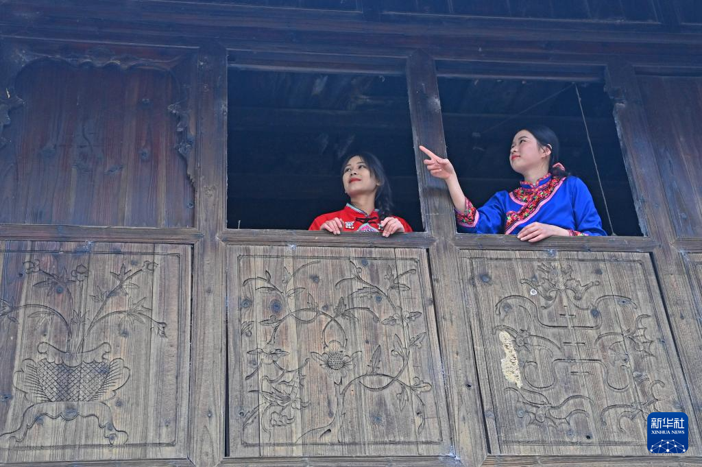 广西柳州市融安县大将镇龙妙村龙妙屯老街民房上的雕花(12月17日摄)。