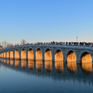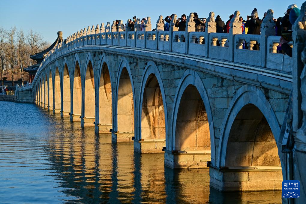 每逢冬至前后,北京颐和园十七孔桥便会上演“金光穿洞”的自然奇观。