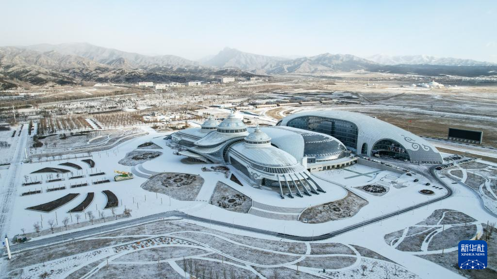 这是12月20日拍摄的位于呼和浩特市的内蒙古少数民族群众文化体育运动中心(无人机照片)。