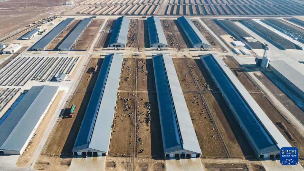 这是12月17日拍摄的呼和浩特市伊利敕勒川生态智慧牧场(无人机照片)。