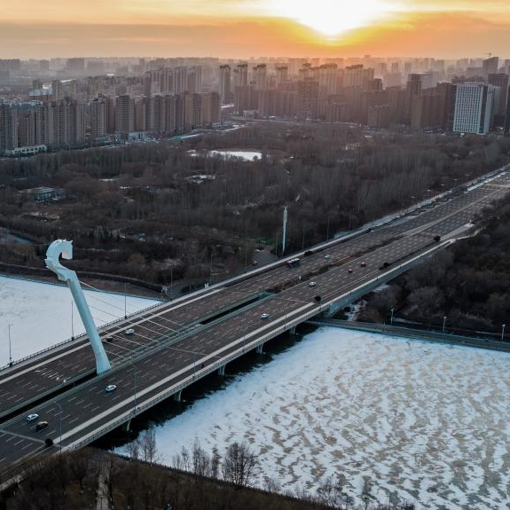 这是12月16日拍摄的呼和浩特市敕勒川大桥(无人机照片)。