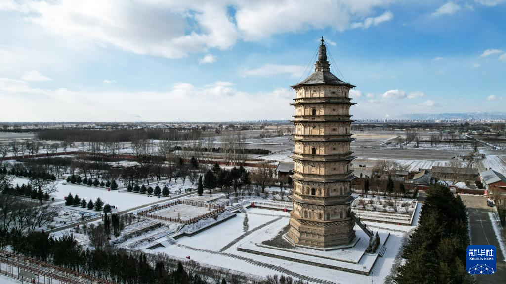 这是12月20日拍摄的位于呼和浩特市赛罕区的万部华严经塔(无人机照片)。万部华严经塔建于辽代,俗称“白塔”,1982年被国务院确定为第二批全国重点文物保护单位。