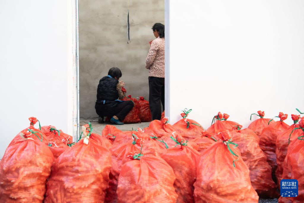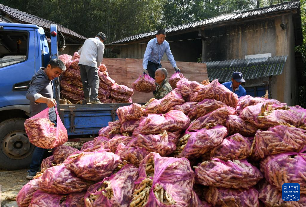 11月7日,当日是立冬,在安徽省铜陵市郊区大通镇大院村,村民将选好的姜种送到姜阁。