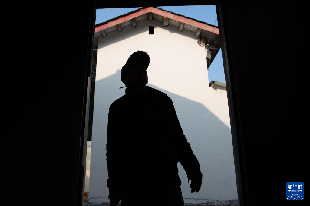 12月14日,在安徽省铜陵市郊区大通镇大院村,“姜把式”佘检保在查看姜阁的内部情况。