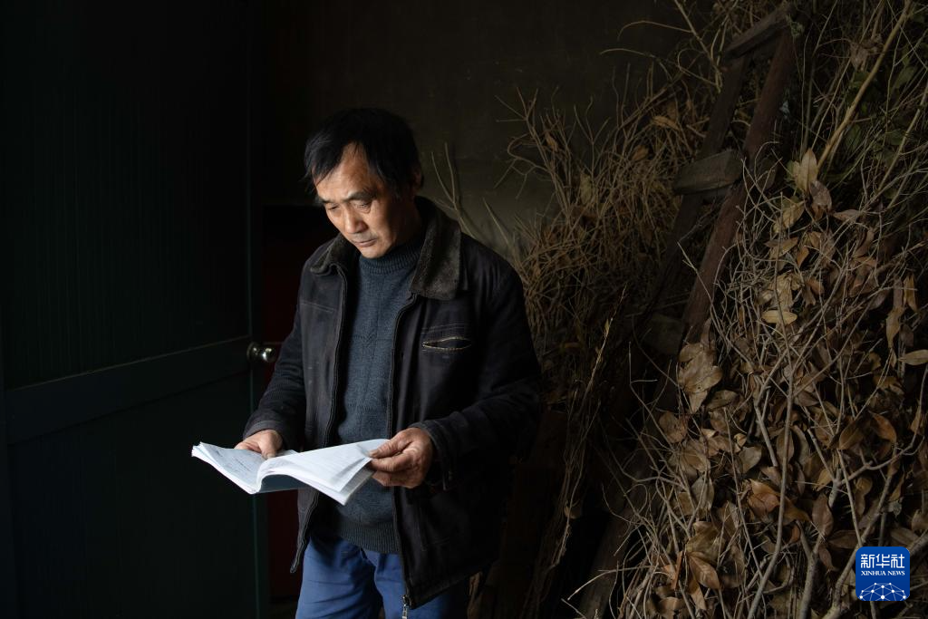 12月18日,在安徽省铜陵市郊区大通镇大院村,“姜把式”佘检保在查看记账本,上面记录着各家各户在姜阁里存放姜种的情况。
