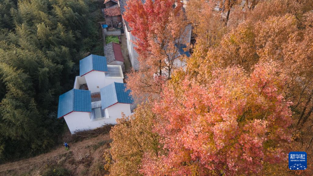 这是11月7日拍摄的位于安徽省铜陵市郊区大通镇大院村的姜阁外景(无人机照片,画面下方为姜阁)。