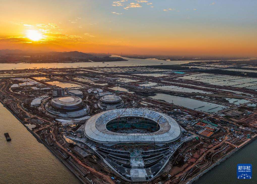 位于粤港澳大湾区“地理几何中心”的广州南沙全民文化体育综合体建设进展顺利(2024年11月27日摄,无人机照片)。