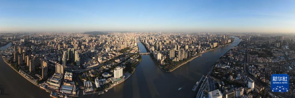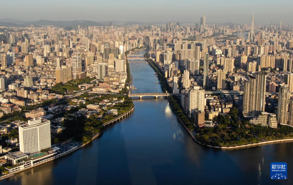 广州白鹅潭一景(2024年11月29日摄,无人机照片)。