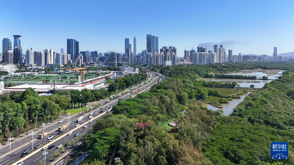 这是位于深圳福田红树林湿地(2024年11月29日摄,无人机照片)。