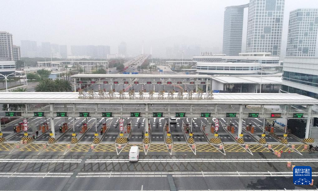 这是横琴大桥“二线”通道海关监管区(2024年2月29日摄,无人机照片)。