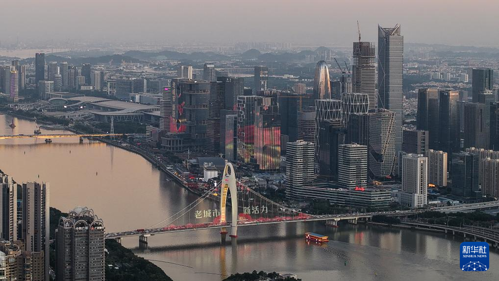 广州市区沐浴在夕阳余晖之中(2024年11月29日摄,无人机照片)。