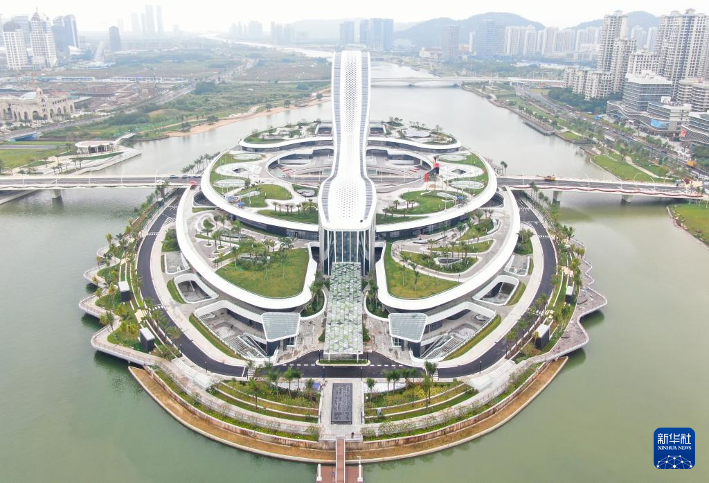 这是横琴粤澳深度合作区标志(2024年11月26日摄,无人机照片)。