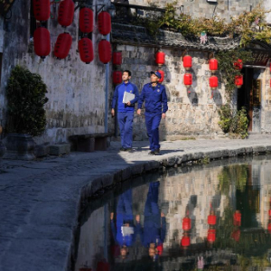 宏村中的建筑以砖木结构为主,防火是第一要务。41岁的舒建军是宏村镇专职消防队的队长,规律性的“值守、巡逻、上户”是舒建军工作的主要内容。“我们全天候巡逻,白天查看有无电线裸露、飞线充电等现象,晚上则要提醒商户闭店时及时关电源、关火源。”除了日常巡逻外,他和同事要定期对村里的商户、民宿等进行消防检查。2024年,他带队排查的消防安全隐患就超过130项。
