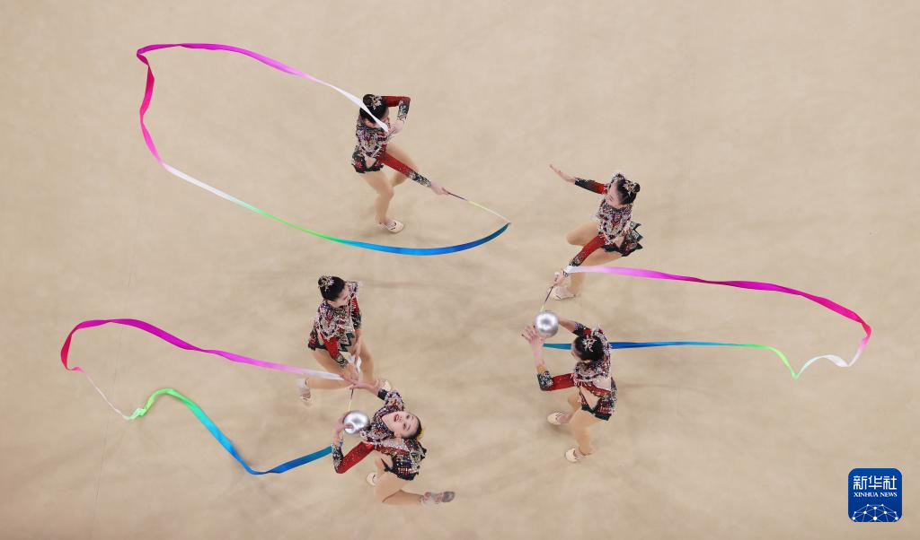 这是2024年8月10日,中国队在巴黎奥运会艺术体操集体全能决赛中。