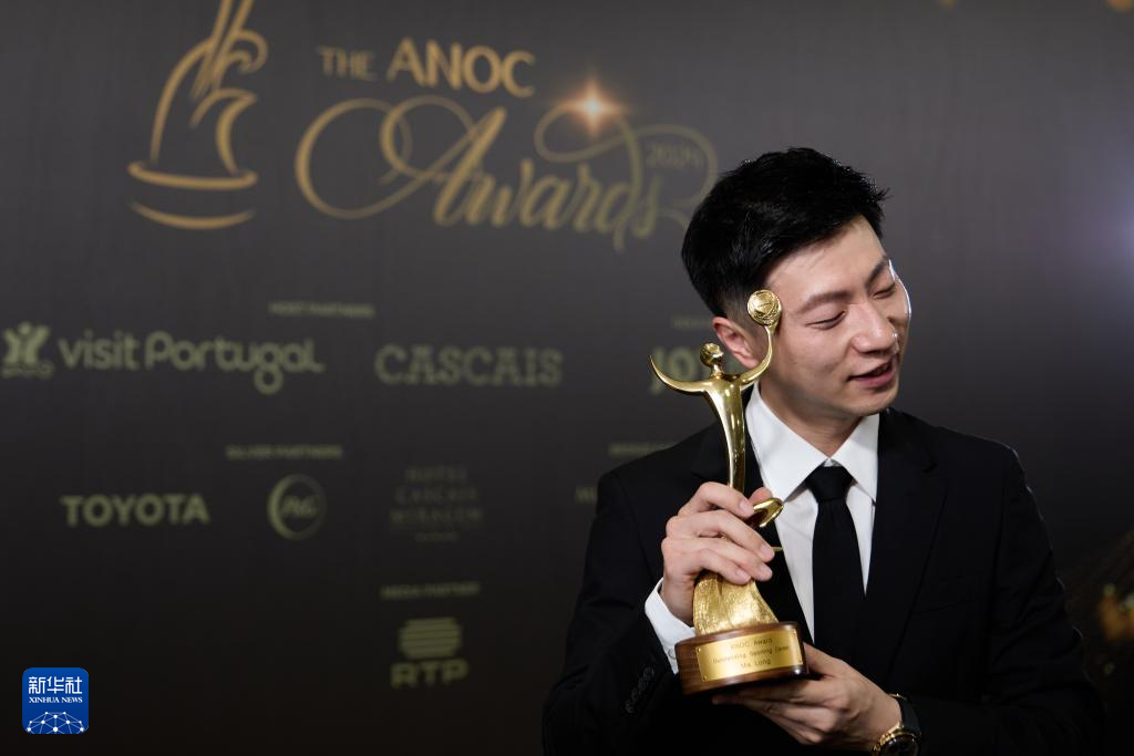 这是2024年10月30日,马龙手捧杰出运动生涯奖奖杯。