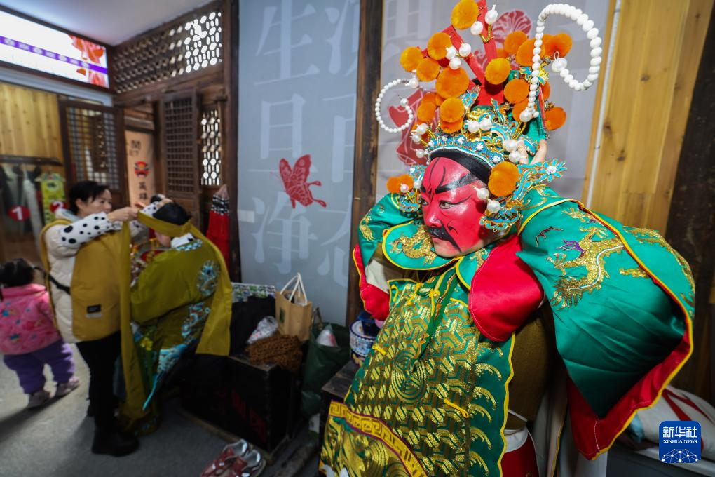 12月25日,郑店村婺剧坐唱班的演员在村文化礼堂为村民们演出婺剧《关羽探营》。