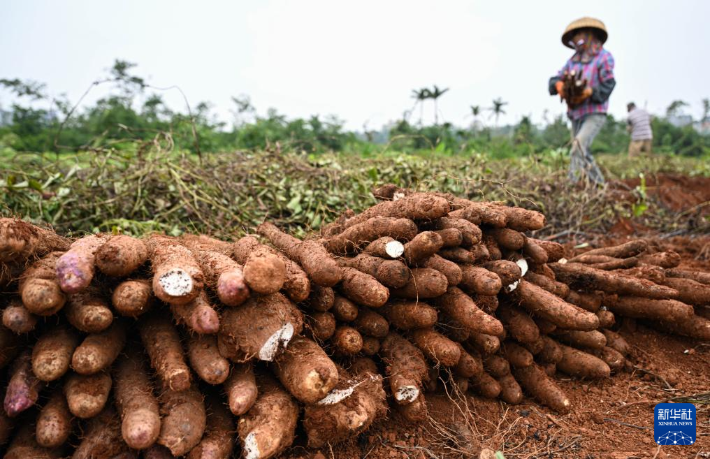 12月23日,农民在琼山区云龙镇采收淮山。