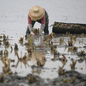 12月24日,农民在琼山区红旗镇七水洋种植茭白。