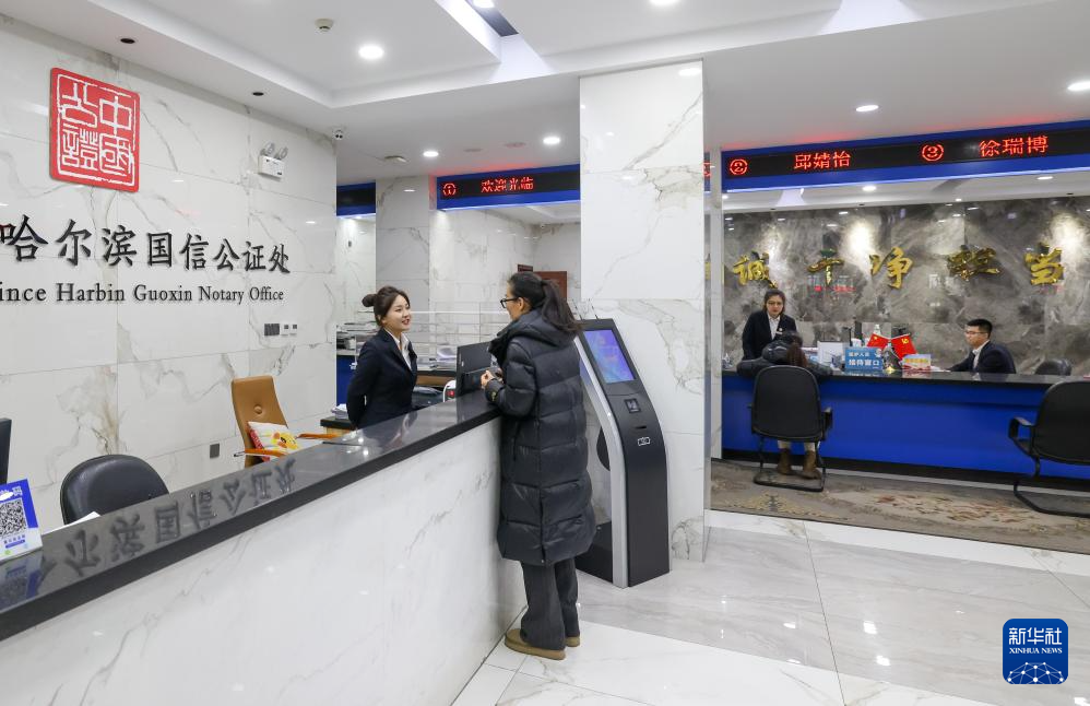 12月9日,黑龙江省哈尔滨国信公证处的工作人员提供咨询和公证服务。