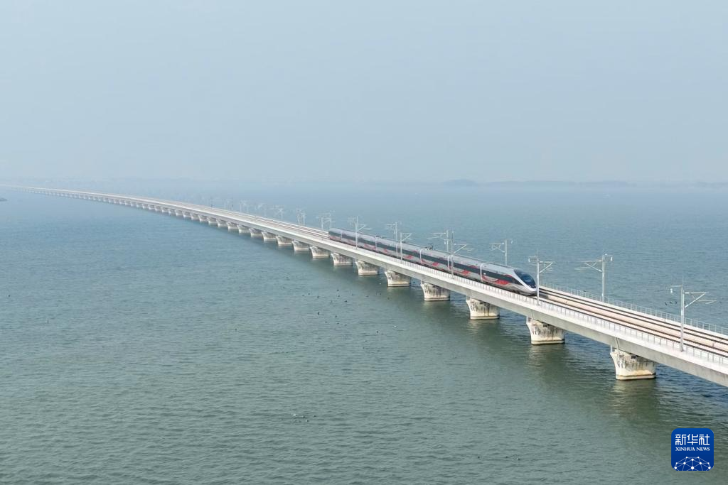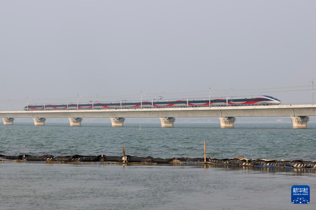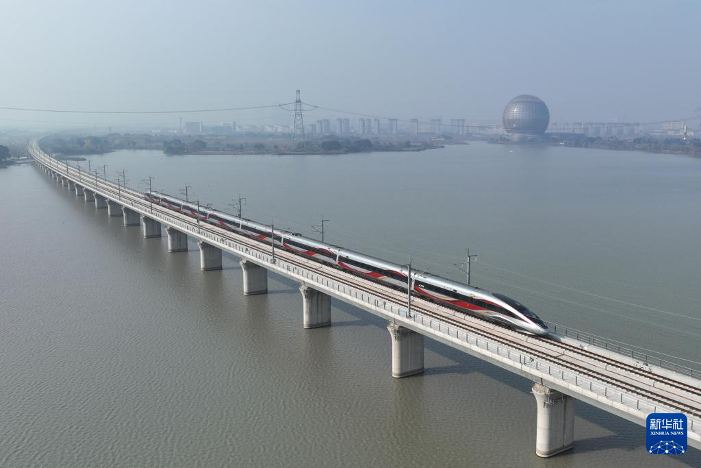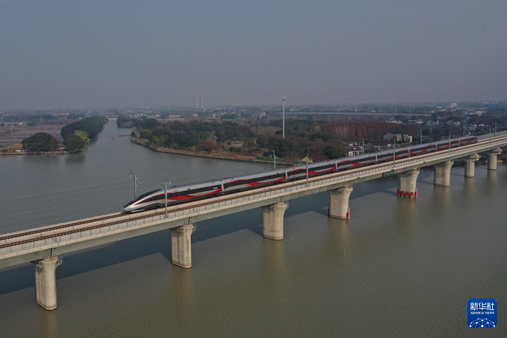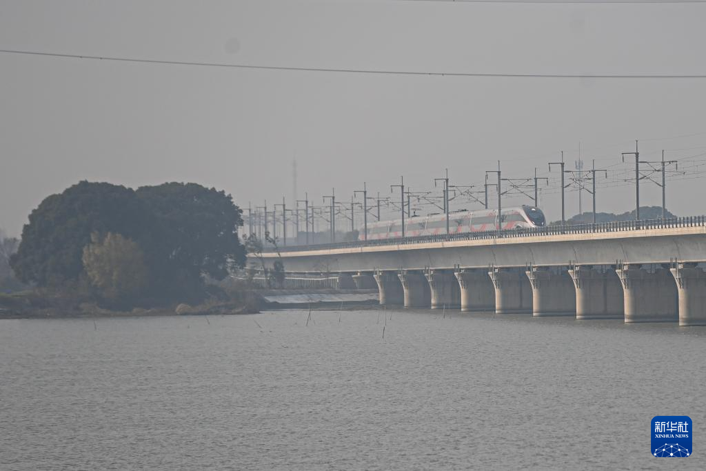12月26日,列车驶过沪苏湖高铁元荡湖段。
