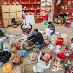 12月9日,拉萨布制面具制作技艺西藏自治区级非遗传承人西洛在合作社门前的空地上和同事一起检查做好的西藏传统面具。西洛是拉萨布制面具制作技艺的西藏自治区级非遗传承人,他制作的面具广泛运用于藏戏表演中。2012年,在政府的扶持下,西洛创办了拉萨市达孜区雪乡扎西岗传统手工艺合作社。近年来,合作社不断吸纳当地群众学习面具制作技艺,不仅为当地群众提供就业机会,同时也助力非物质文化遗产的保护和发展。