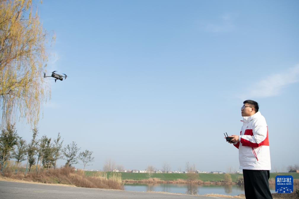 12月20日,一名泗县河长办工作人员利用无人机对隋唐大运河通济渠泗县段进行巡查。