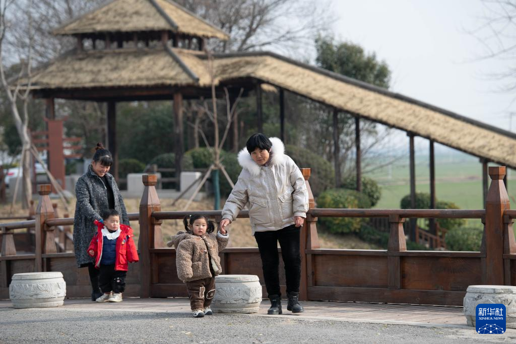 12月19日,家长带着孩子在隋唐大运河通济渠泗县段沿岸游玩。