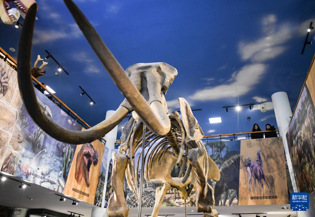 12月28日,人们在山东省潍坊市博物馆观看潍坊象复原模型。