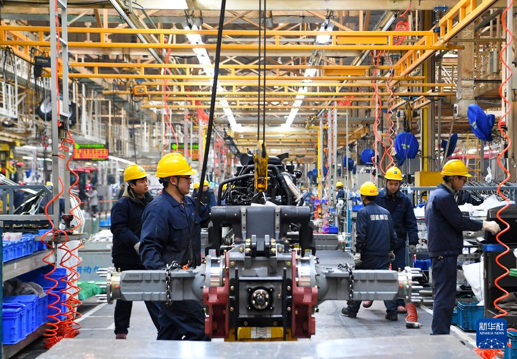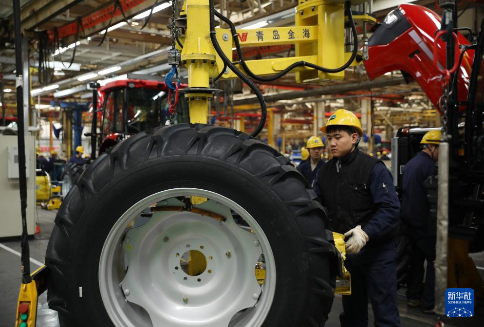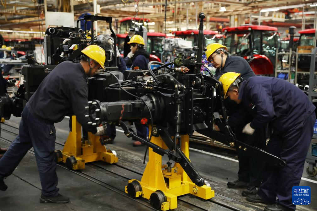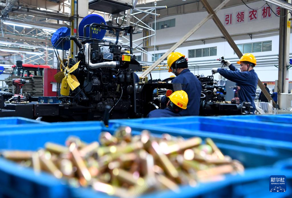 12月27日,中国一拖集团有限公司员工在总装车间流水线上作业。