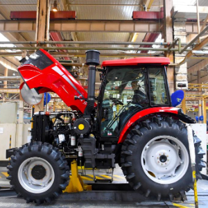 整机底盘上线、液压系统组装、驾驶室安装……不到3分钟,就有一台拖拉机从位于河南洛阳的中国一拖集团拖拉机生产线下线。